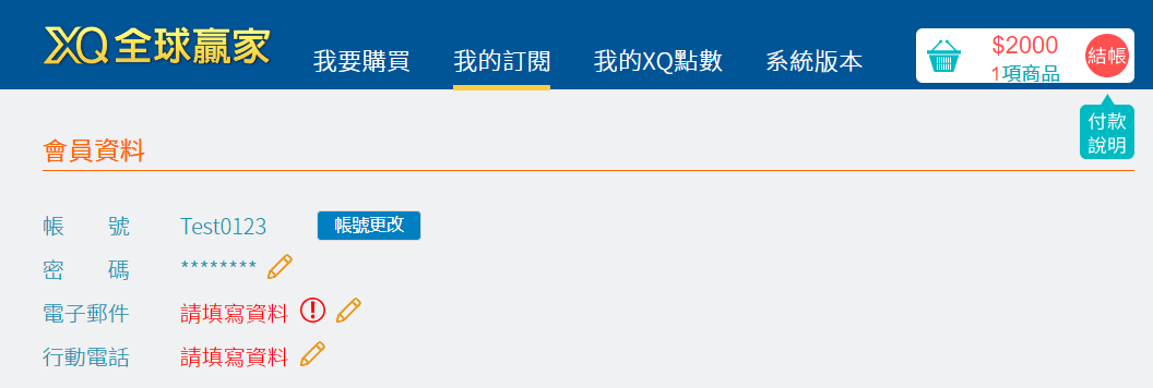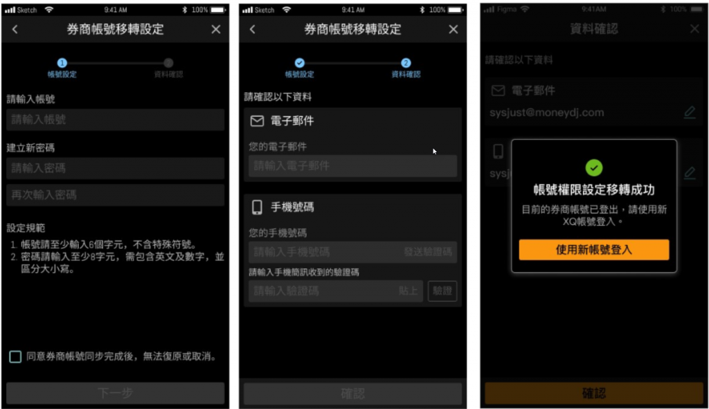 請於2024/1/31前主動登入XQ,把您的券商帳號移轉成XQ帳號。移轉完成之後,您可立即使用新帳號登入,您的模組權限、點數、推薦碼、帳務設定及所有的頁面和資料等,將維持原有設定不受任何影響。更改前請務必確保您的桌機版為 3.12.03以上、XQ手機APP為4.8.34以上。 ※註:若已經是使用XQ帳號登入,則不需進行移轉。| 2024年2月1日起,原本使用券商帳號登入的用戶如果要繼續使用XQ產品,請自行註冊一組XQ帳號。 若現行的券商帳號有訂閱付費模組,請來信客服信箱(XQservice@XQ.com.tw),以協助處理付費權限事宜。 |