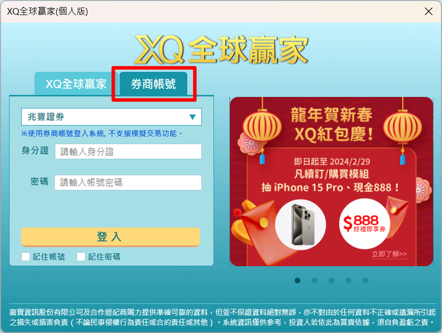 2024年2月1日起,XQ(個人版)將不再支援券商帳號登入。