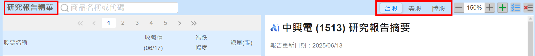 研究報告具備龐大的知識含量。但如果投資人沒有足夠的時間或知識儲備時,讀懂報告就是一件非常辛苦的事情。此功能將可以幫助使用者用最短的時間,讀懂個股研究報告的重點精華,搶先掌握市場最新研究成果。