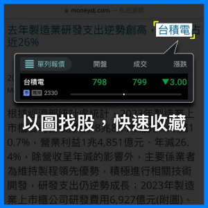 不管您喜歡看新聞,或是和朋友分享股票訊息。只要上傳圖片,或拍攝照片,我們能從圖片中剖析出股票資訊,讓您快速蒐藏到自選股清單中。