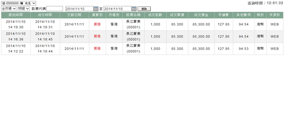 點選系統的〔海外帳務〕按鈕,再點選〔歷史成交〕標籤。