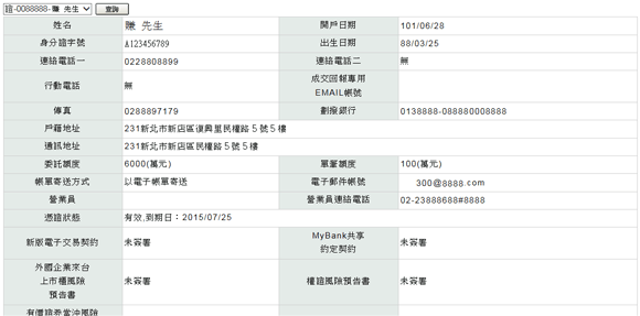 )下拉式選單,顯示使用者的交易帳號。
