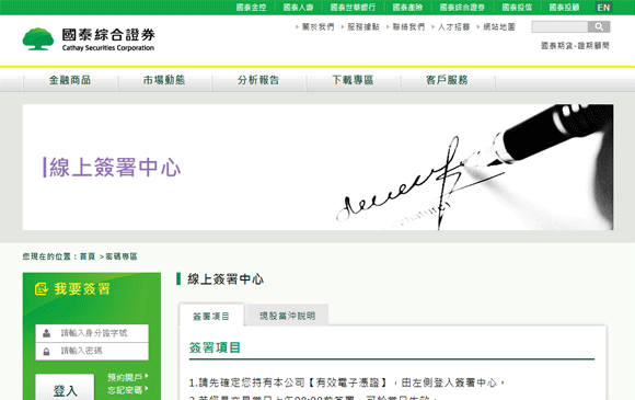 可開啟國泰綜合證券的線上簽署中心畫面。