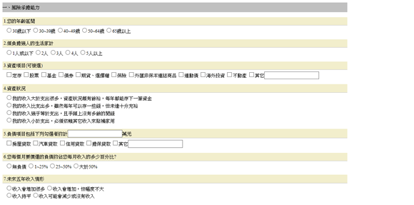 此頁面為風險屬性評量測驗頁面 ,使用者可在此頁面重做風險屬性評量。
