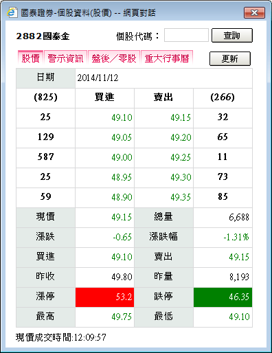 以滑鼠左鍵點擊「現價」數字會帶現價到「價格」輸入欄,以滑鼠左鍵點擊「更新」,系統會更新所顯示的「現價」; |