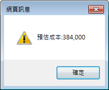 點選〔預估成本〕按鈕會彈出「預估成本」視窗。 |