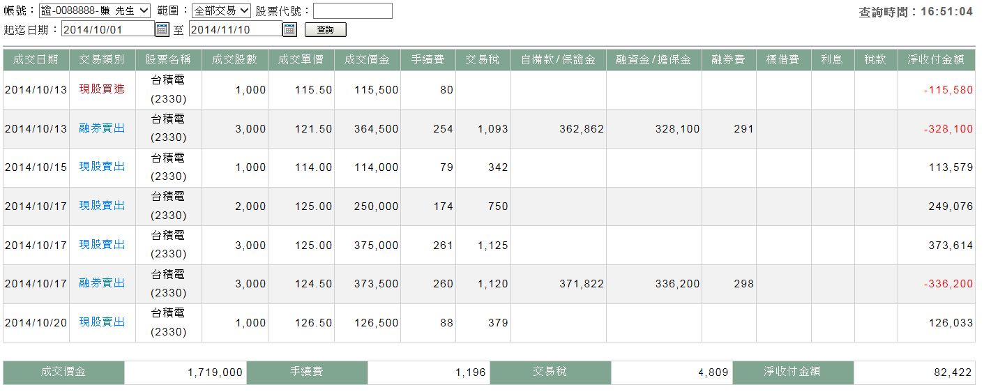 )由下拉式選單選擇查詢「全部交易」、「普通交易」、「盤後交易」、「零股交易」、