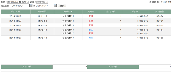 )由下拉式選單選擇查詢「全部交易」、「 期貨」、「選擇權」。
