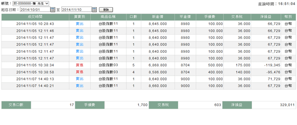 點選系統的〔期權帳務〕按鈕,再點選〔歷史沖銷查詢〕標籤。