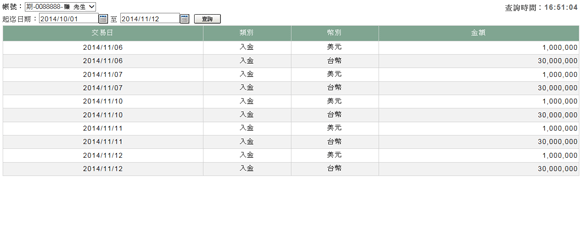 點選系統的〔期權帳務〕按鈕,再點選〔歷史出入金查詢〕標籤。