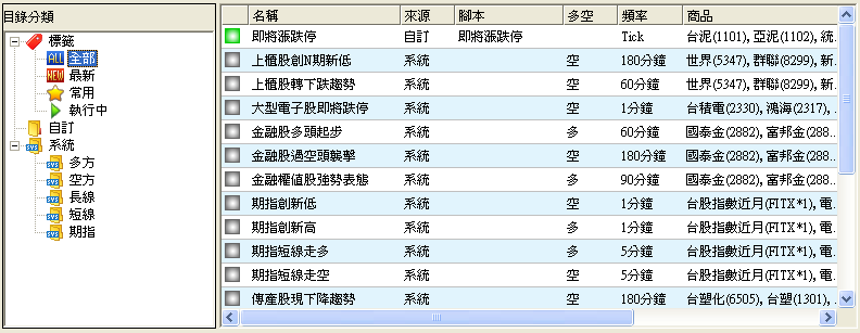 目錄分類﹙左側﹚可以依進階警示的標籤或目錄顯示對應的進階警示於清單區﹙右側﹚。