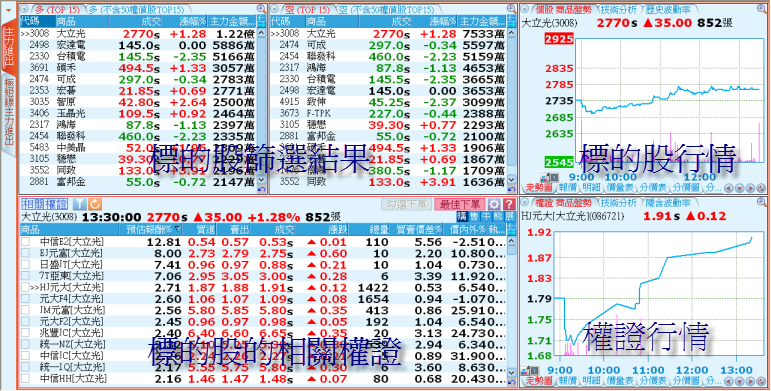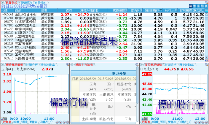 提供權證過濾條件和下單串接功能。