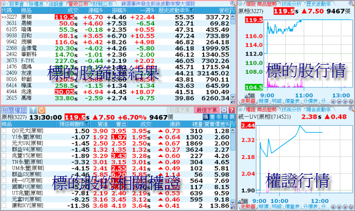 - 相關權證:詳細內容請參考『相關權證功能說明』。