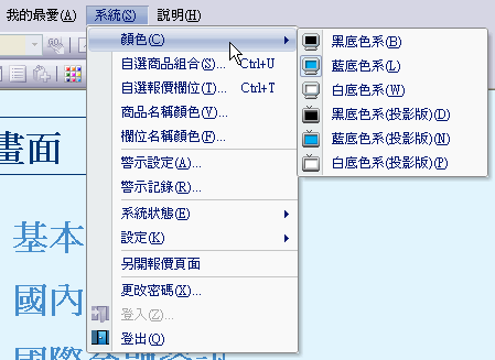 系統提供六種色系供使用者選用,分別為:黑底色系(