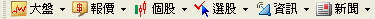 將豐富的報價資訊予以分類,方便使用者直接查詢。類別項目包括:自選股報價、自選股量價走勢、自選股技術分析、自選股績效比較、綜合看盤、港股大利市、熱門股報價、自動播報與自選股、上市分類股報價、上櫃分類股報價、上市播報順序、上櫃播報順序、興櫃報價、權證報價、台股類股報價、細產業指標、台股精選報價、期貨選擇權、港股報價資訊、深滬報價資訊、港中指數成份股、區域分類、產業龍頭、華人產業、大中華、電視牆等報價資訊。 |