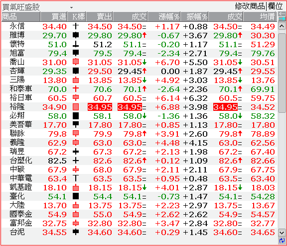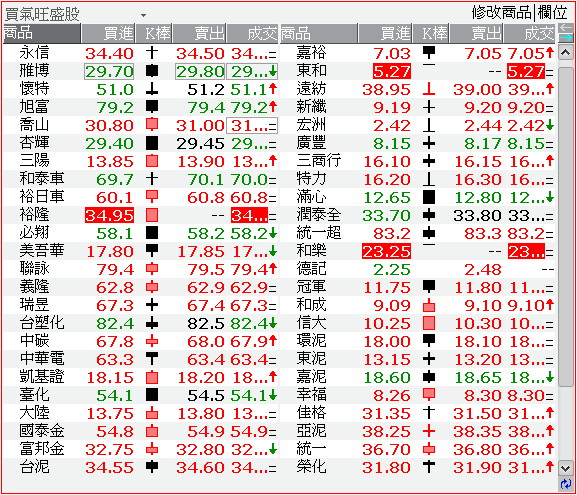 報價欄位皆可排序,第一次點選,會由大到小排,再點一次欄位名稱,會改成由小到大排序,點第三次,會回復為初始設順序。