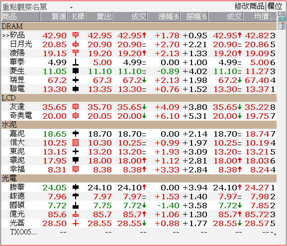 提供使用者同時觀察多種商品報價的功能,以了解各類別的商品組合行情。