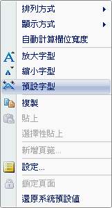 放大/縮小/預設字型:供使用者調整作用欄框中的字型大小。