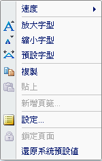 - 速度:以跑馬燈呈現,可指定資料移動的速度,前方打勾者表示目前的設定值。