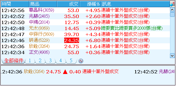 | 即時選股,提供數十種多空選股條件,於盤中即時計算,讓投資人能在第一時間掌握個股的變化,有效把握買賣點訊號。 |