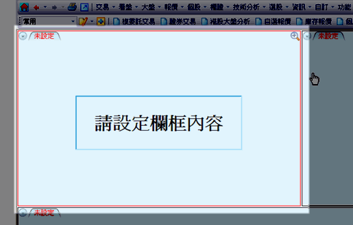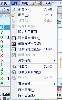 | 點選功能列中的「自訂」功能項,用戶即可依自己看盤需求設定看盤畫面。