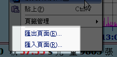 ◆頁面匯出/匯入: