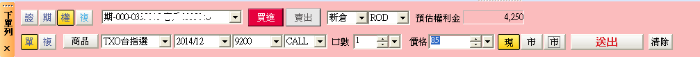 )下拉式選單,提供〔新倉〕、〔平倉〕之選項,選擇權無〔當沖〕之選項。