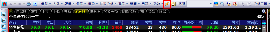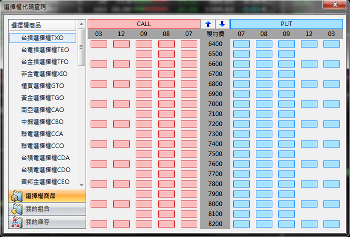 ( )提供〔期貨〕及〔選擇權〕市場選項,選定市場後按鈕的底色會呈現黃色顯示。
