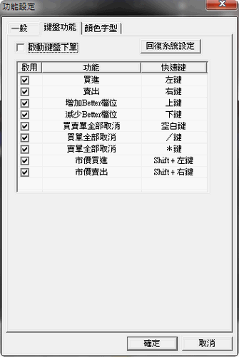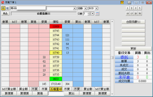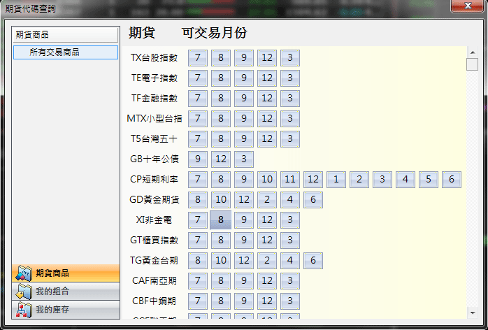 〔六組商品記憶〕按鈕:會記憶使用者最近6次所選擇的商品合約,按下欲交易的商品按鈕後,系統會將所選定的商品 帶入