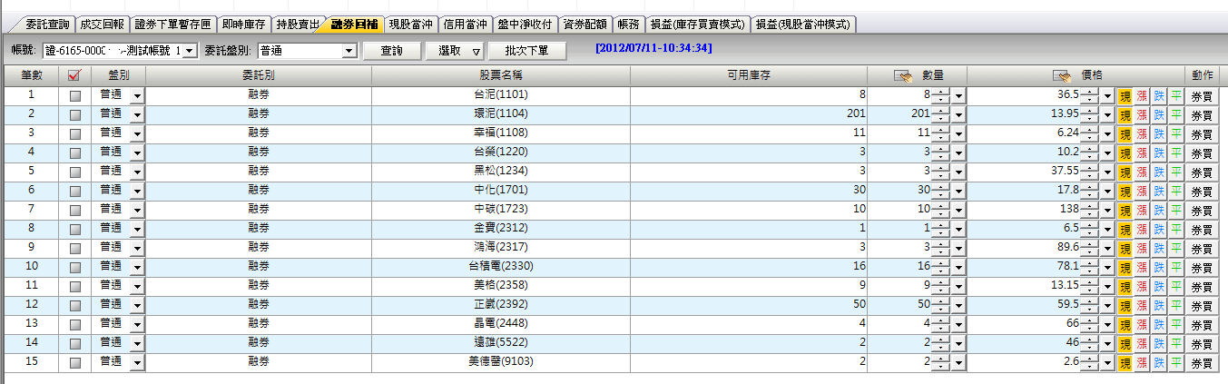 由交易頁面"群組按鈕"的「證券」點選「 融券回補」。
