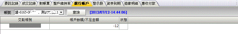 由交易頁面"群組按鈕"的「證券」點選「帳務」/「銀行帳戶」。