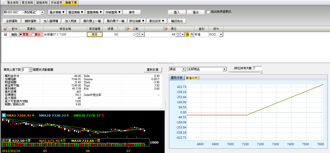 )後,系統會重新計算〔損益兩平點〕、〔獲利機率〕、〔獲利目標〕......等資料。