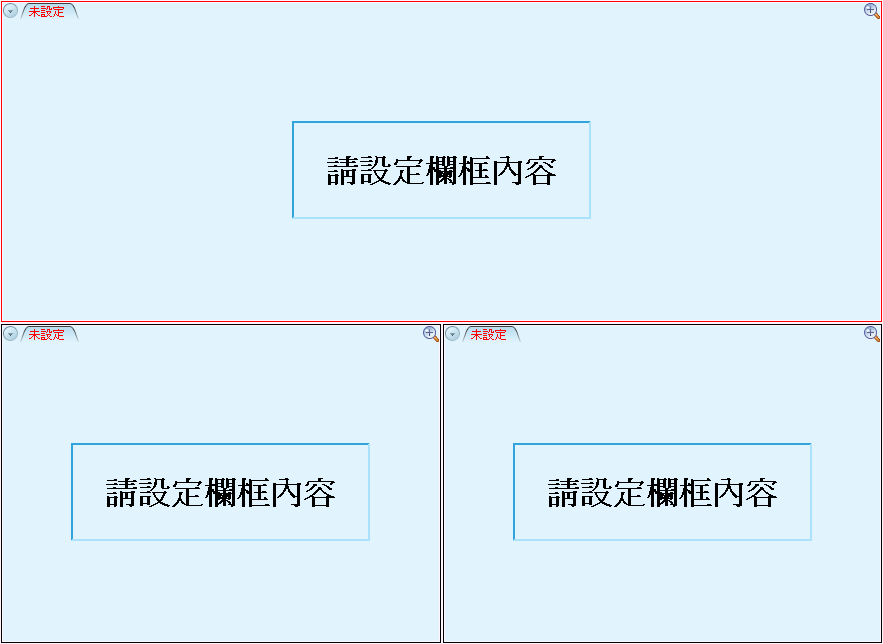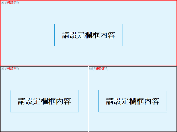 設計各空白欄框的內容。例如:上方放報價組合,左下放走勢圖,右下放技術分析圖。並把三個欄框設成同步。