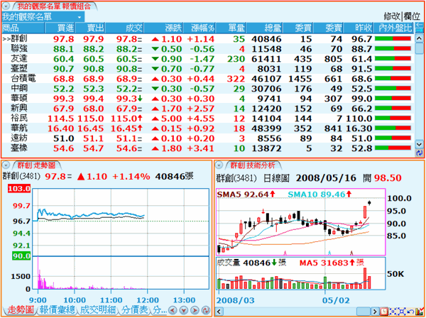 使用者可以利用多頁籤功能,設計出更多樣化的看盤畫面。