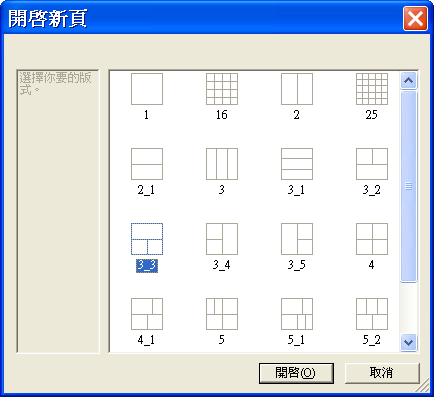 利用「開啟新頁」先開啟空白的式樣頁。