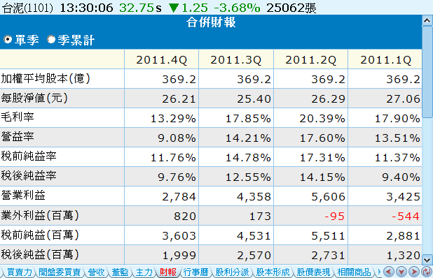 - 加權平均股本:股本是一家公司規模大小的指標。當公司仍處於小股本階段時,通常也代表著公司處於黃金的成長階段。而公司股本較大,則常代表著公司已於某一個產業取得領導地位。在另一方面,股本的大小代表著籌碼的多寡。籌碼少的股票具有安定的優點,而籌碼多的股票則具有流動性佳的優點。