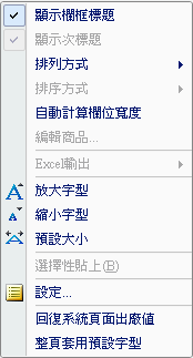 在報價組合內容上按滑鼠右鍵,會出現一快速切換選單,可以經由此選單,啟動輔助功能。