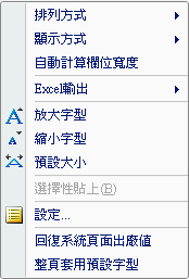 放大/縮小/預設字型:供使用者調整作用欄框中的字型大小。