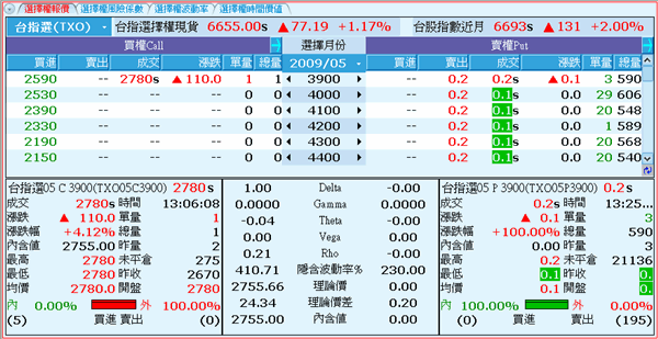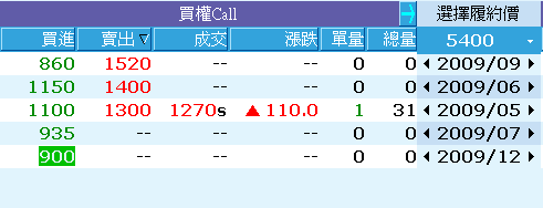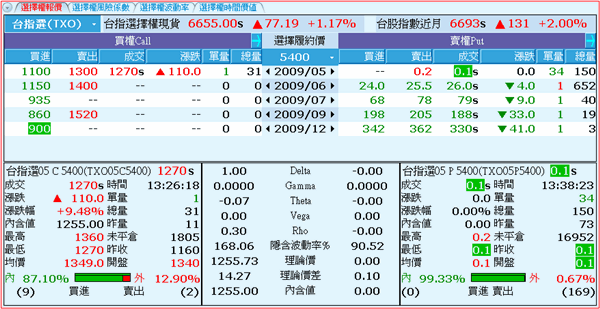 針對選擇權商品所提供的特殊看盤報價模式,將買權與賣權合併觀看。兩種報價方式:依月份報價與依履約價報價顯示: