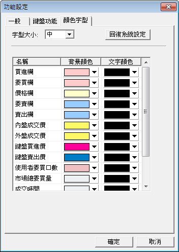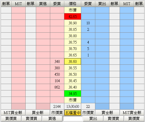 •〔價格〕欄:顯示所選擇商品的報價,價格範圍為當日的漲停至跌停價,可以利用右方的捲動軸來上下移動價格區域。