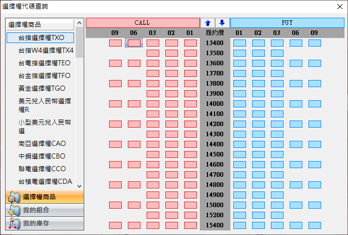•( )下拉式選單,提供〔新倉〕、〔平倉〕、〔自動〕之選項,選擇權無〔當沖〕之選項。