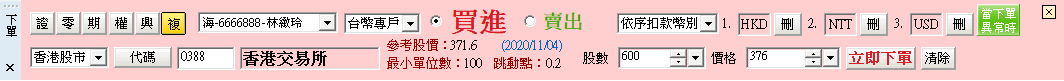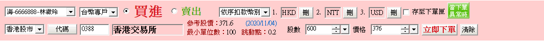點選想要交易的股票,系統會把所點選的股票代碼 |