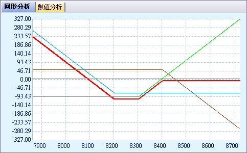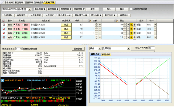 〔損益〕: 系統提供期貨、選擇權組合部位的損益圖形。