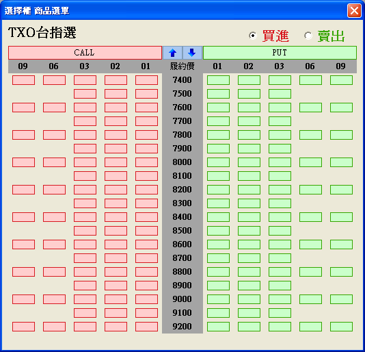 )按鈕,工作表內所有商品的履約價會同時上調〔上一個履約價〕。