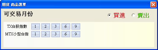 )按鈕,系統將彈出〔期貨商品選單〕對話盒。