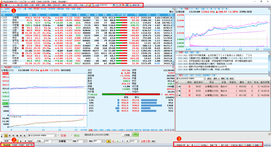 本系統提供豐富的台灣股市行情,讓您透過即時財經資料庫與強大的資訊分析能力,搭配下單功能,