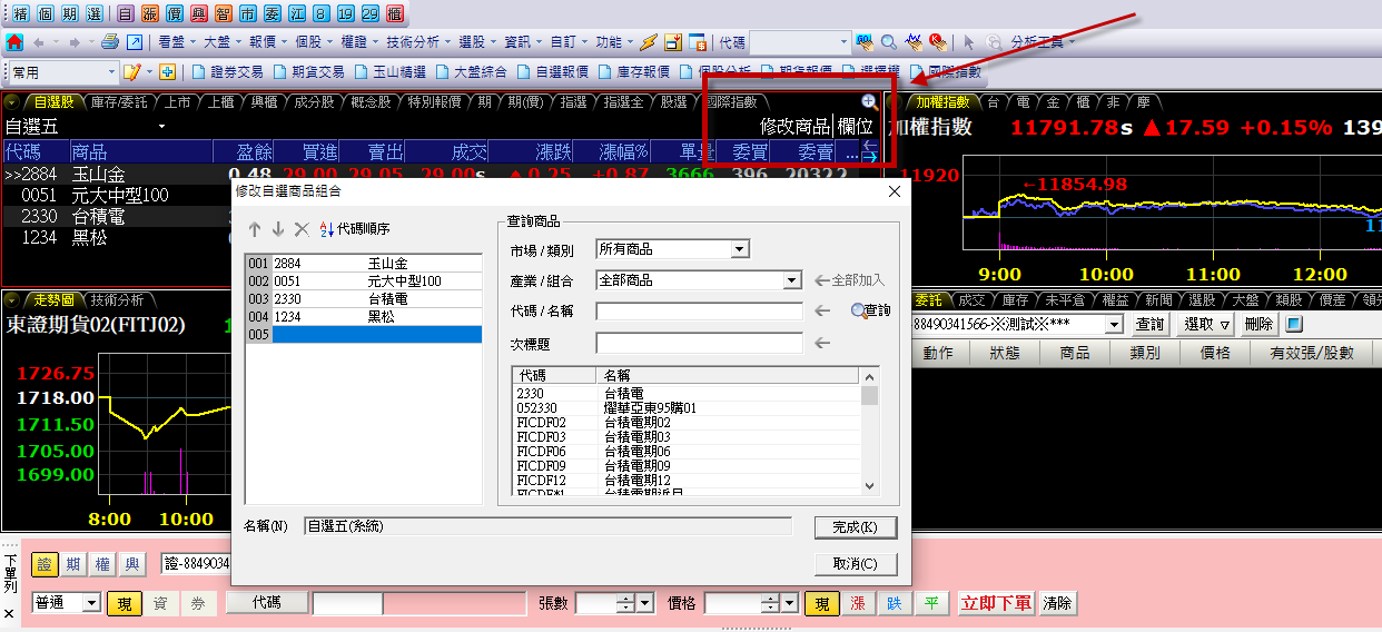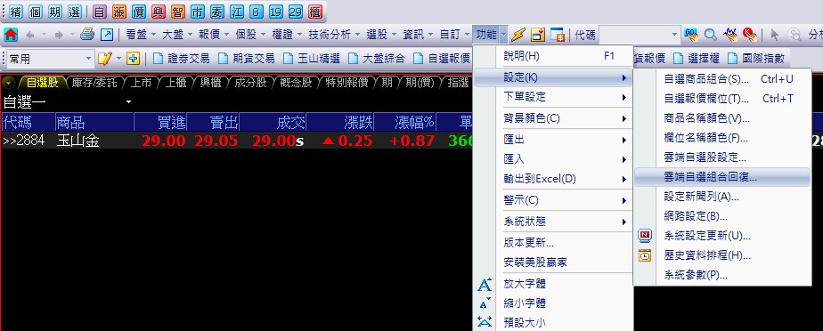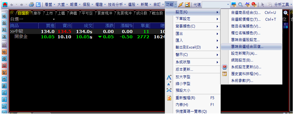 雲端自選組合回復,點選欲恢復的自選股即可。