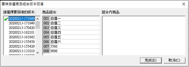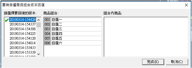 1.功能路徑:首頁上方「功能」->設定->雲端自選組合回復