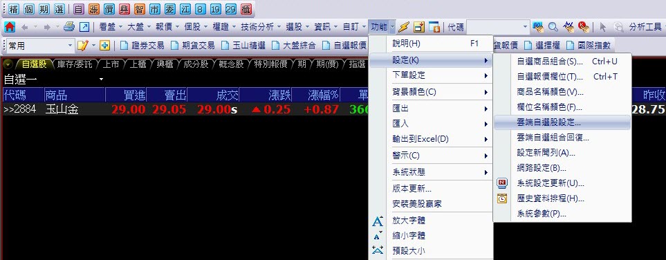 雲端自選股啟用設定;各功能選項說明請參考下方圖示內容說明