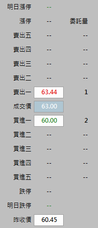 〔價格〕可直接在欄位內輸入 交易價格;以滑鼠左鍵點擊(